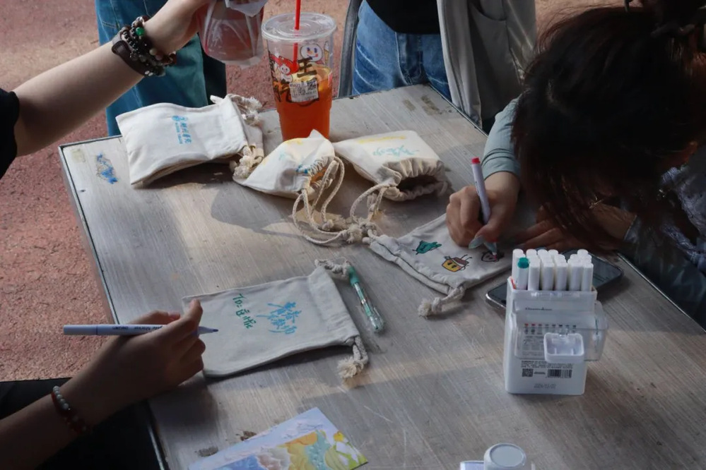 实践体验环节注重将廉洁理念融入生活,通过绘画、书法等形式来加深同学们对廉洁的认知。在“清风印记”摊位,同学们亲手绘制廉洁主题帆布袋;在“清廉心语”摊位,同学们在明信片上书写廉洁格言并加盖特色印章,创作出独具意义的“廉洁文创”,将廉洁融入日常。“生健能量场”摊位则以精彩的氛围表演将市集气氛推向高潮。同学们用歌声传递青春担当,欢快的节奏感染着每一个人,让整个市集沉浸在青春活力与廉洁正气交融的热烈氛围中。