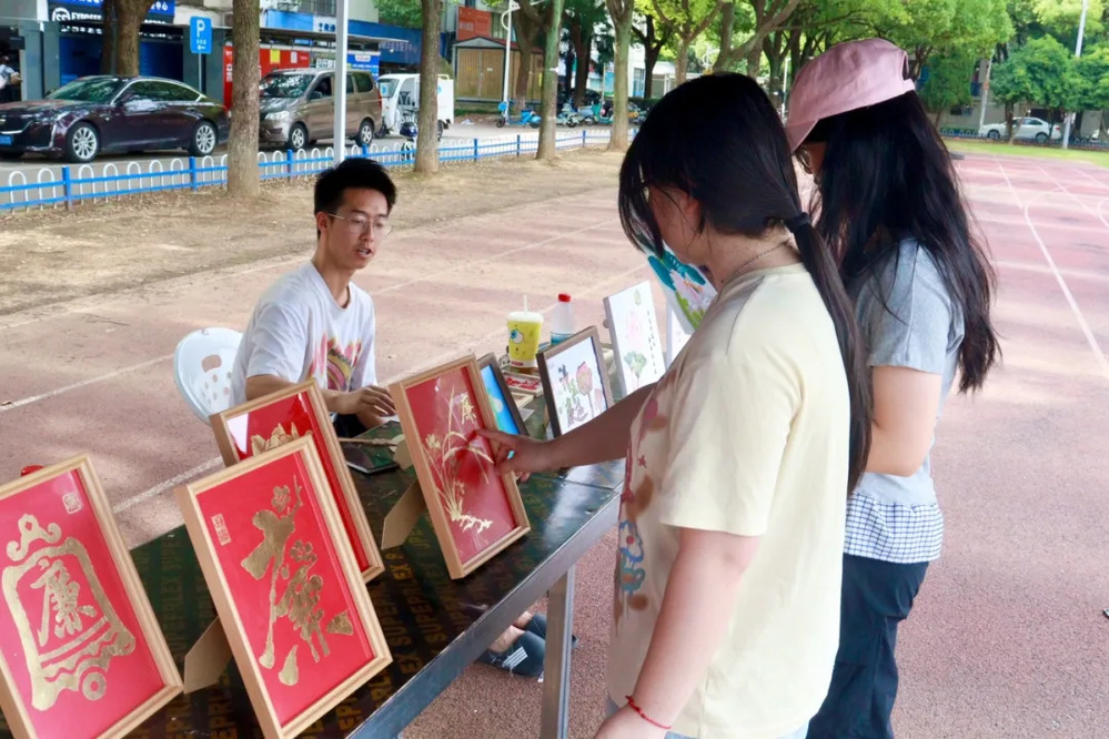6 月 18 日下午,光彩体育场变身廉洁文化与青春活力交织的创意天地,一场别开生面的 “青春担当 廉行校园” 廉洁文化创意市集火热开启,师生们化身“清风体验官”,在创意与互动交织的氛围中,沉浸式感受廉洁文化的魅力。