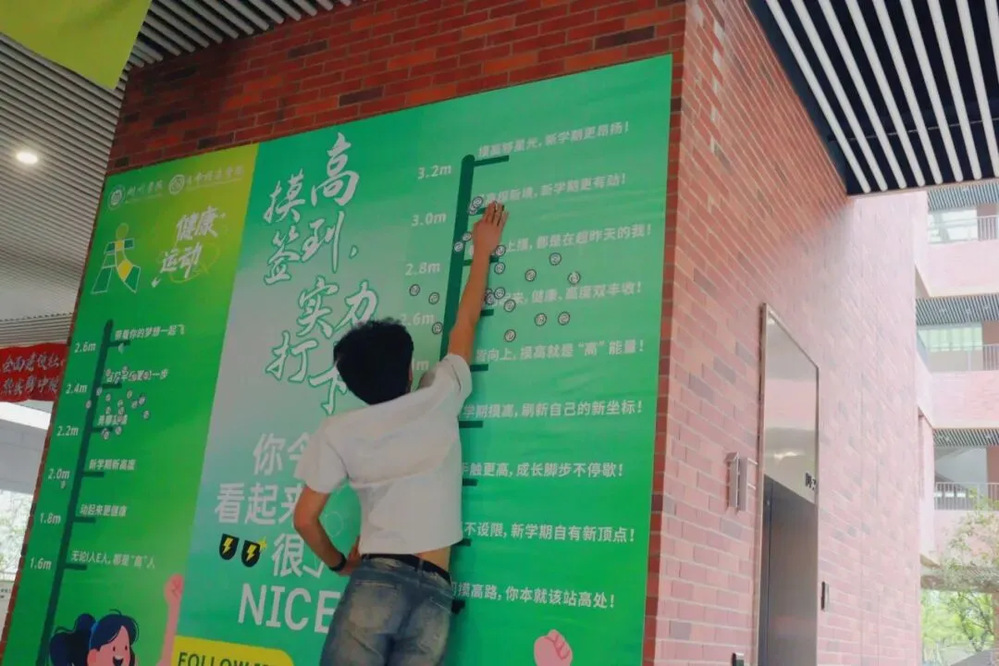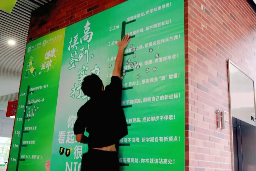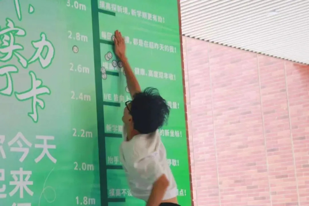 充满活力的“摸高贴院徽”环节