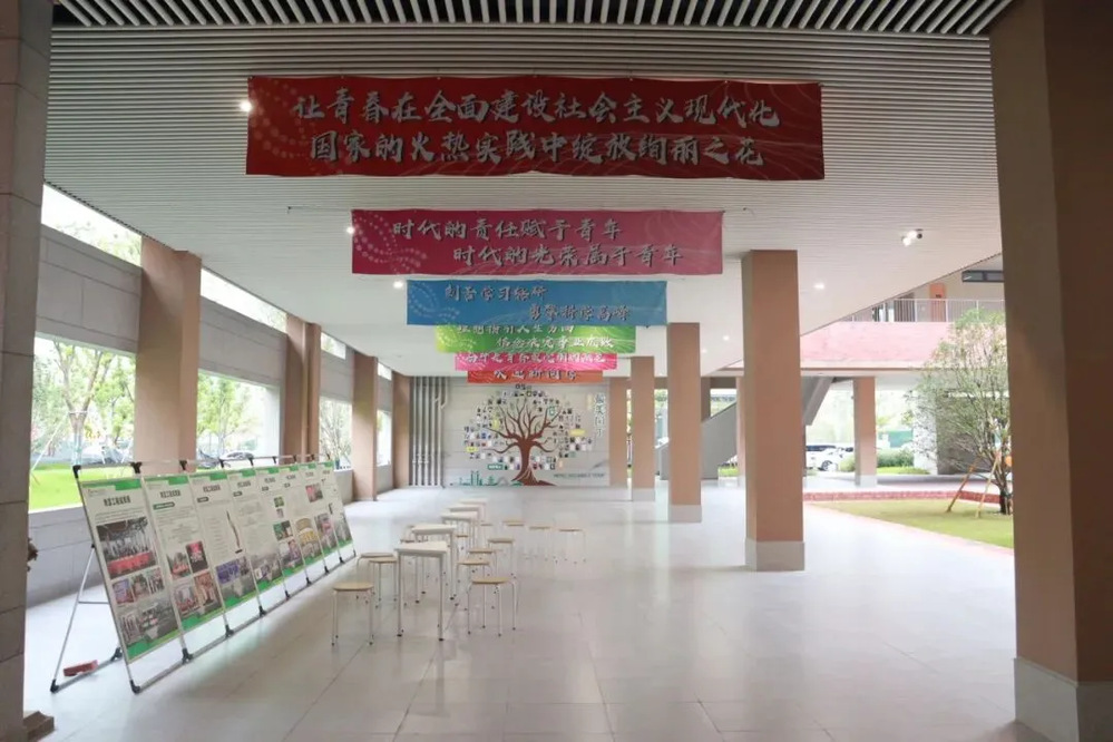 楼道里挂满了迎新横幅