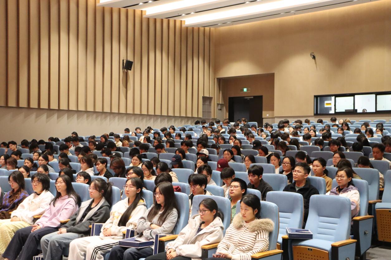 学院党委书记李晓瑛以 “成长逐梦” 为主题讲授“书记第一课”。她代表学院党委向来自五湖四海的 2025 级新生表示热烈欢迎,带领新生走进湖州这座有温度、有底蕴、有活力的城市,详细介绍了学院的学科优势、师资力量与育人成果。李晓瑛书记围绕 “系好人生第一粒扣子”,向新生提出四点成长建议:一是系好 “理想信念扣”,将个人梦想融入国家发展大局;二是系好 “勤学笃行扣”,培养自主学习与创新思维;三是系好 “品德修养扣”,以高尚品德筑牢成长根基;四是系好 “创新进取扣”,主动适应时代发展需求。同时,她还向新生普及马克思主义宗教观与国家宗教政策,引导新生树立正确的世界观、价值观。