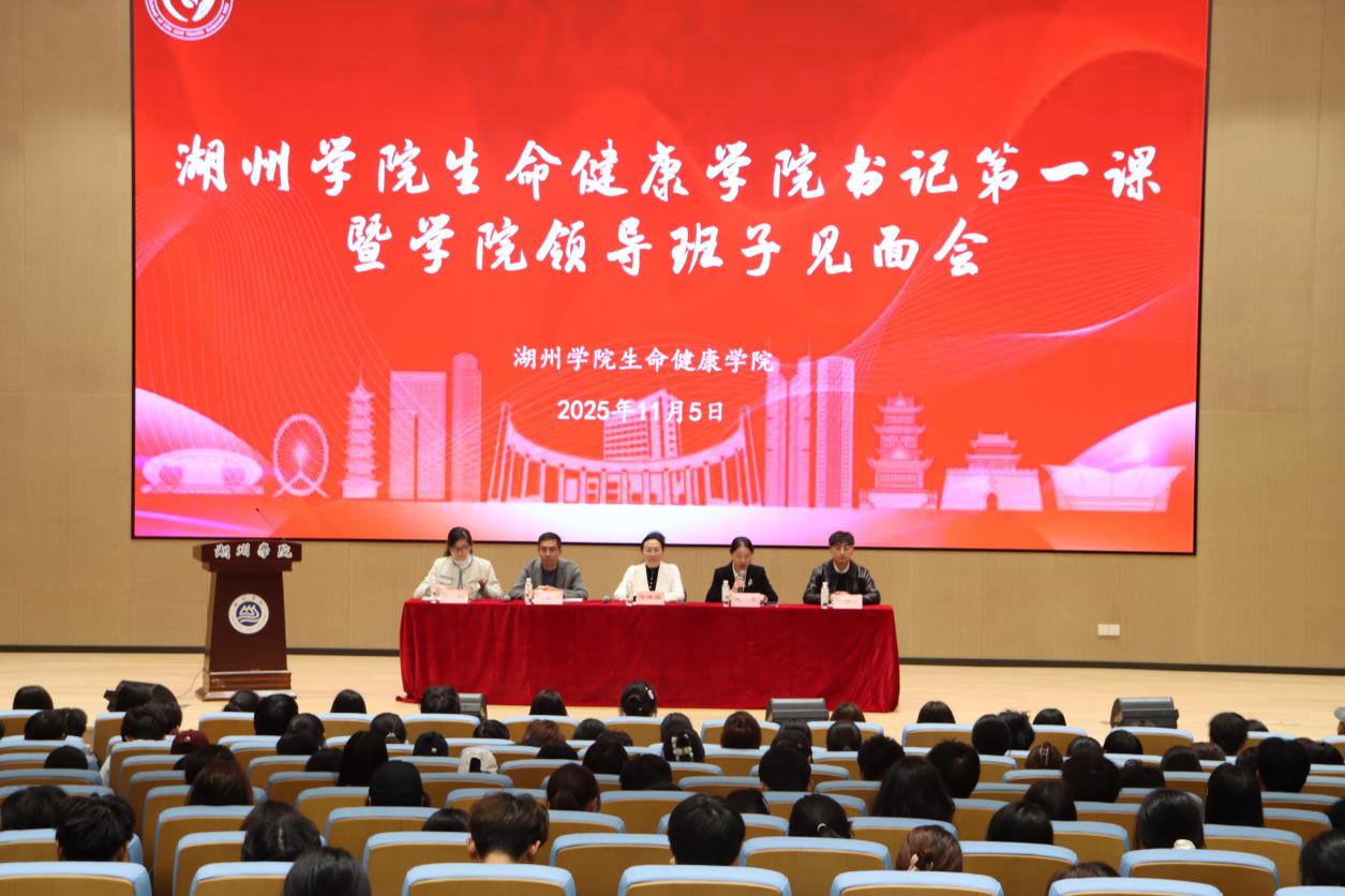 为帮助 2025 级新生快速了解学院架构、明确自身发展方向、融入校园生活,11 月 5 日晚,生命健康学院在大学生活动中心一楼学术报告厅隆重举行“书记第一课”暨学院领导班子见面会。学院领导班子、辅导员、教学办工作人员与 2025 级全体新生齐聚一堂,共同开启新生成长新征程。会议由学院党委副书记、纪委书记王慧主持。