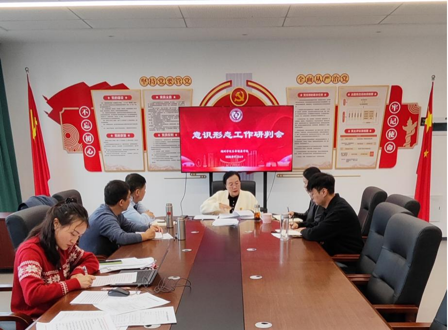 风险排查等方面详细介绍了工作进展,客观分析了当前学院意识形态领域的总体态势,指出了工作中存在的薄弱环节和潜在风险点,并提出了下一步工作计划。她强调意识形态工作是党的一项极端重要的工作,关乎旗帜、关乎道路、关乎国家政治安全,学院必须将其摆在突出位置,常抓不懈。