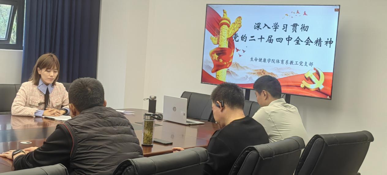 为深入学习贯彻党的二十届四中全会精神,推动全会部署在教育教学实践中落地生根,11月6日,我院体育系教工党支部召开专题学习研讨会。会议由党支部书记张自云主持,支部全体党员教师参会。