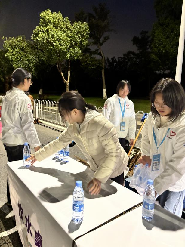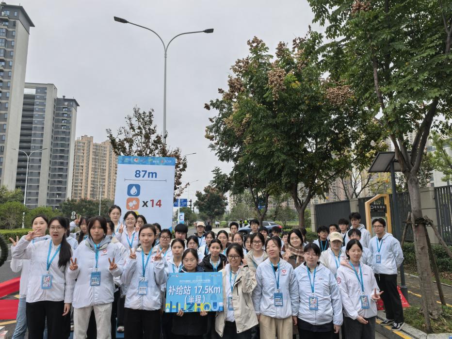上午730,随着发令枪响,湖州市马拉松正式开跑。湖州学院生命健康学院志愿者们坚守在各补给站岗位,分工明确、配合默契。他们快速为参赛选手递上饮用水、运动饮料、能量食品及能量胶,成为赛道旁一道温暖的风景线。