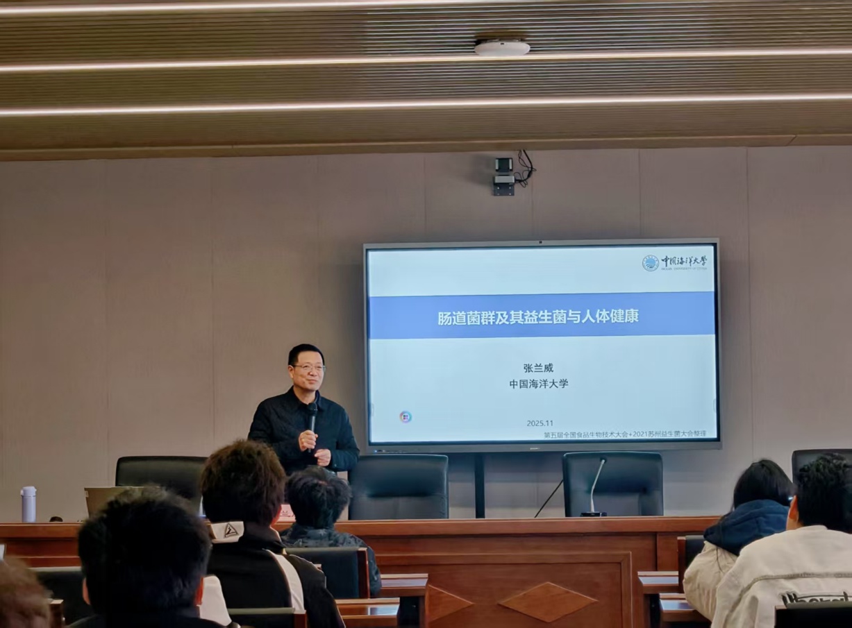 报告中,张兰威教授以 “健康中国 2030” 战略需求为出发点,系统阐述肠道菌群作为 “人体第二基因组” 的重要作用,深入剖析益生菌调节肠道微生态平衡、抵御病原体入侵、改善代谢综合征的分子机制。他结合自身团队在功能性乳品研发、传统发酵食品代谢调控中的实践案例,揭示益生菌从实验室走向产业化的关键技术瓶颈与突破路径,强调益生菌研究对推动我国大健康产业高质量发展的核心价值。整场报告既有对基础理论的深度解读,也有对产业实践的前瞻思考,为师生构建起 “基础研究 - 技术研发 - 产业应用” 的完整认知体系。
