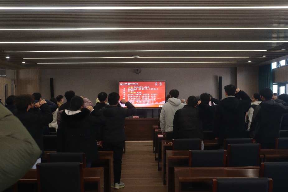 学生代表吴一舟倡议同学们冲刺阶段相互扶持,并带领全体考研学子起立宣誓,铿锵誓言彰显决战决心。随后,学院领导老师为每位备考学子送上 “温暖包”,传递关怀与祝福。