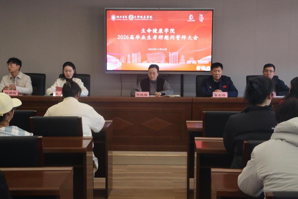 11月26日,我院举办2026届考研誓师慰问大会,为即将应考的学子加油鼓劲。学院领导班子、毕业班班主任、辅导员及全体 2026 届考研学生参会。
