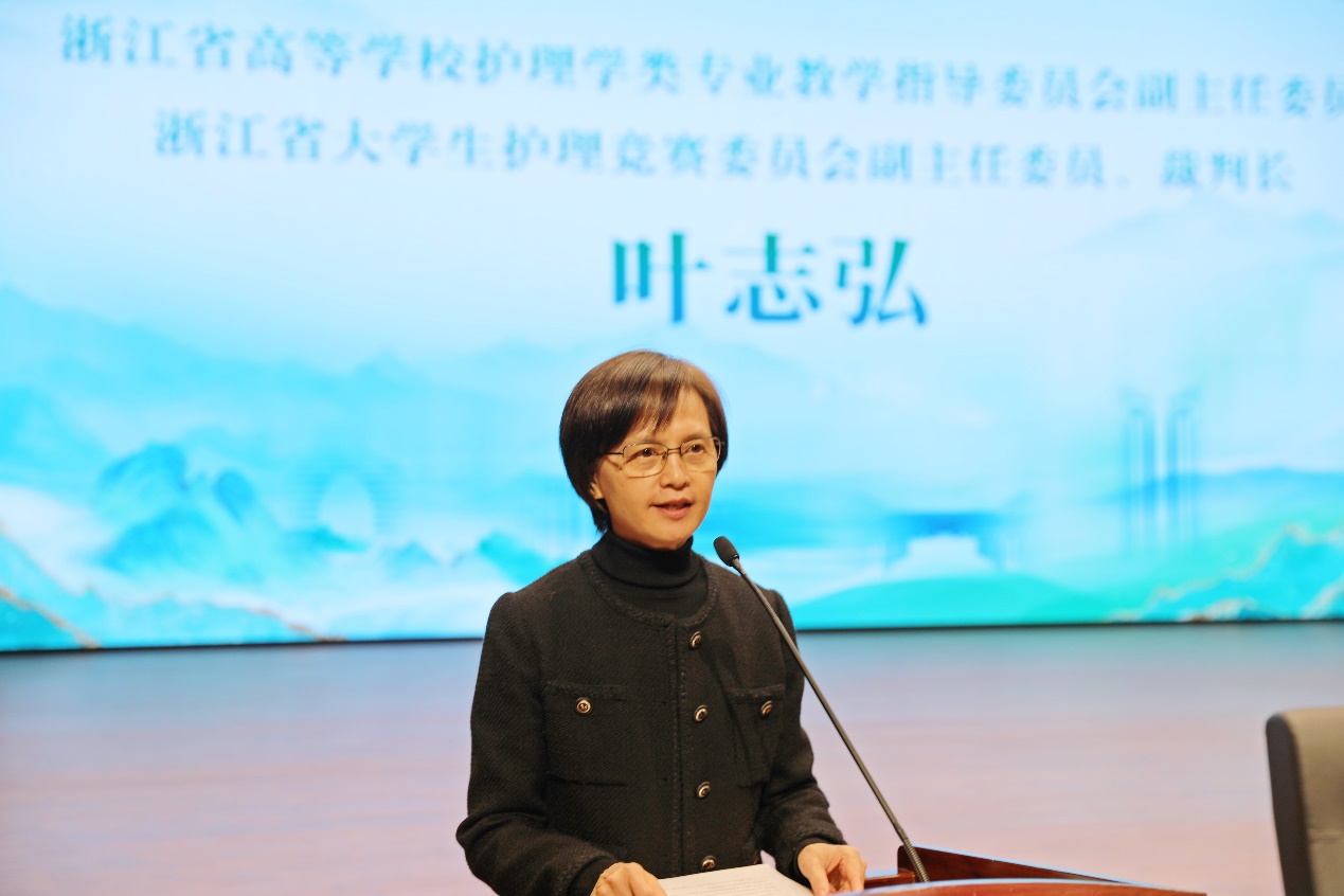 鲁伟权代表湖州学院对各高校师生的到来表示热烈欢迎,向长期关心支持我省护理教育发展、精心筹备本次竞赛的省教育厅、省高校护理学专业教指委、第九届省护理竞赛委员会及执委会的各位同仁表示衷心感谢,并介绍了湖州学院的发展历程与办学成果。他强调,本届竞赛是检验护理教育成果、推动专业内涵建设的重要载体,也是各高校交流互鉴、共促发展的重要平台。作为承办单位,湖州学院高度重视赛事组织工作,致力为所有参赛师生营造公平、温馨的竞赛环境。