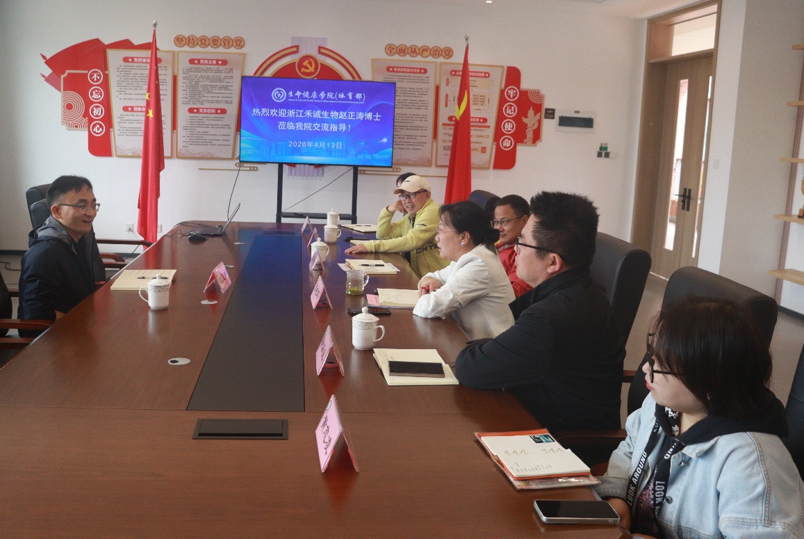 为进一步深化产教融合,搭建校企协同育人平台,精准对接地方生物科技产业发展需求,4月13日,生命健康学院(体育部)与浙江禾诚生物科技有限公司召开产教融合座谈会。禾诚生物首席科学家、产业教授赵正涛博士,学院院长、党委副书记邹华松,党委书记、副院长李晓瑛,党委委员、副院长徐润生与骨干教师代表参加会议。